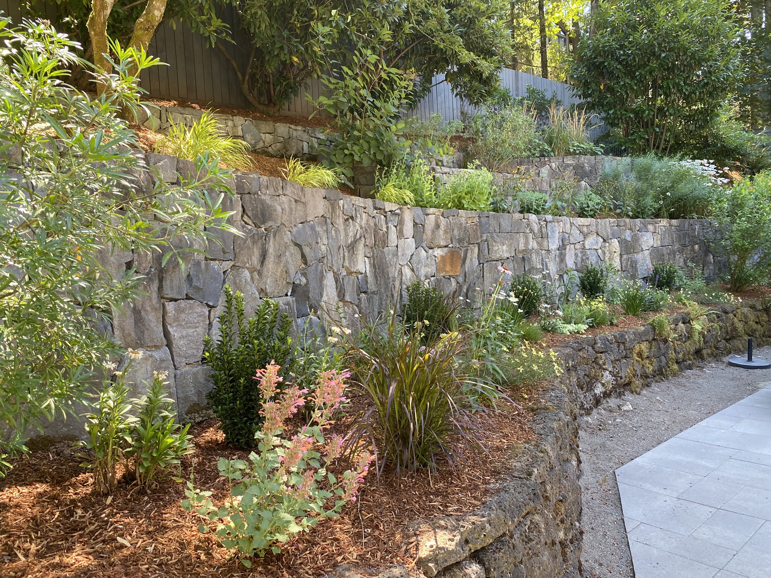 This ongoing project began two summers ago when Fernwood designed the plantings for the backyard garden walls.